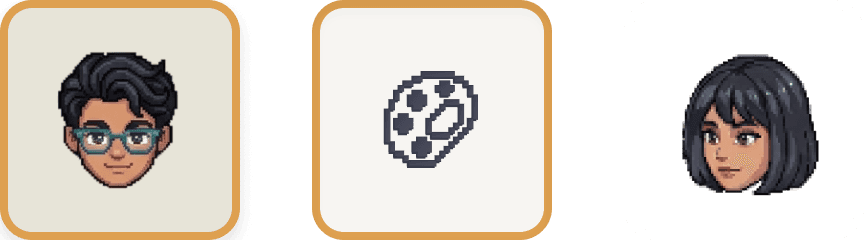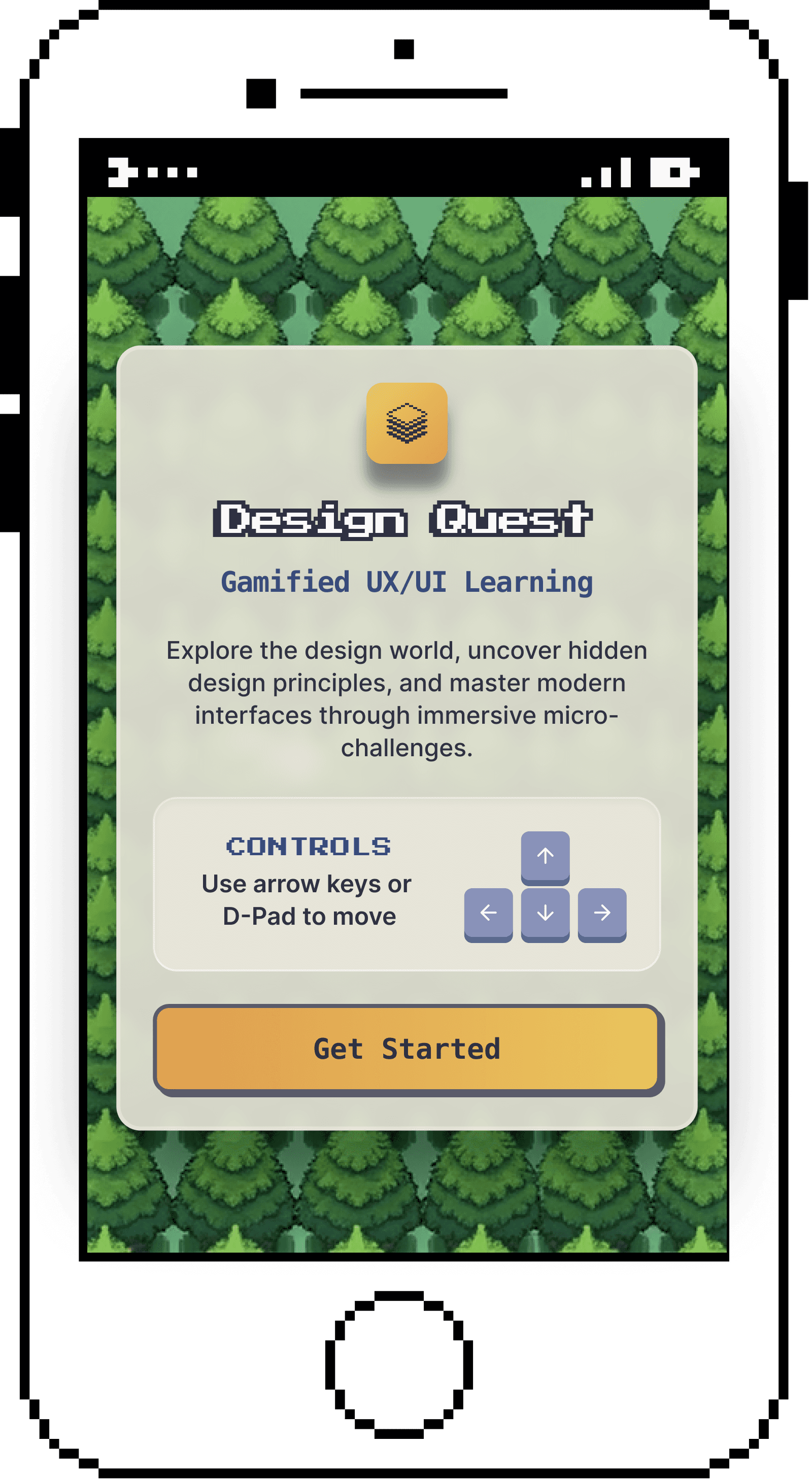 The pixel-art world creates immediate nostalgia, it signals "this is a game, not a course." But UI panels use modern design: clean Inter type, soft shadows, cream cards.